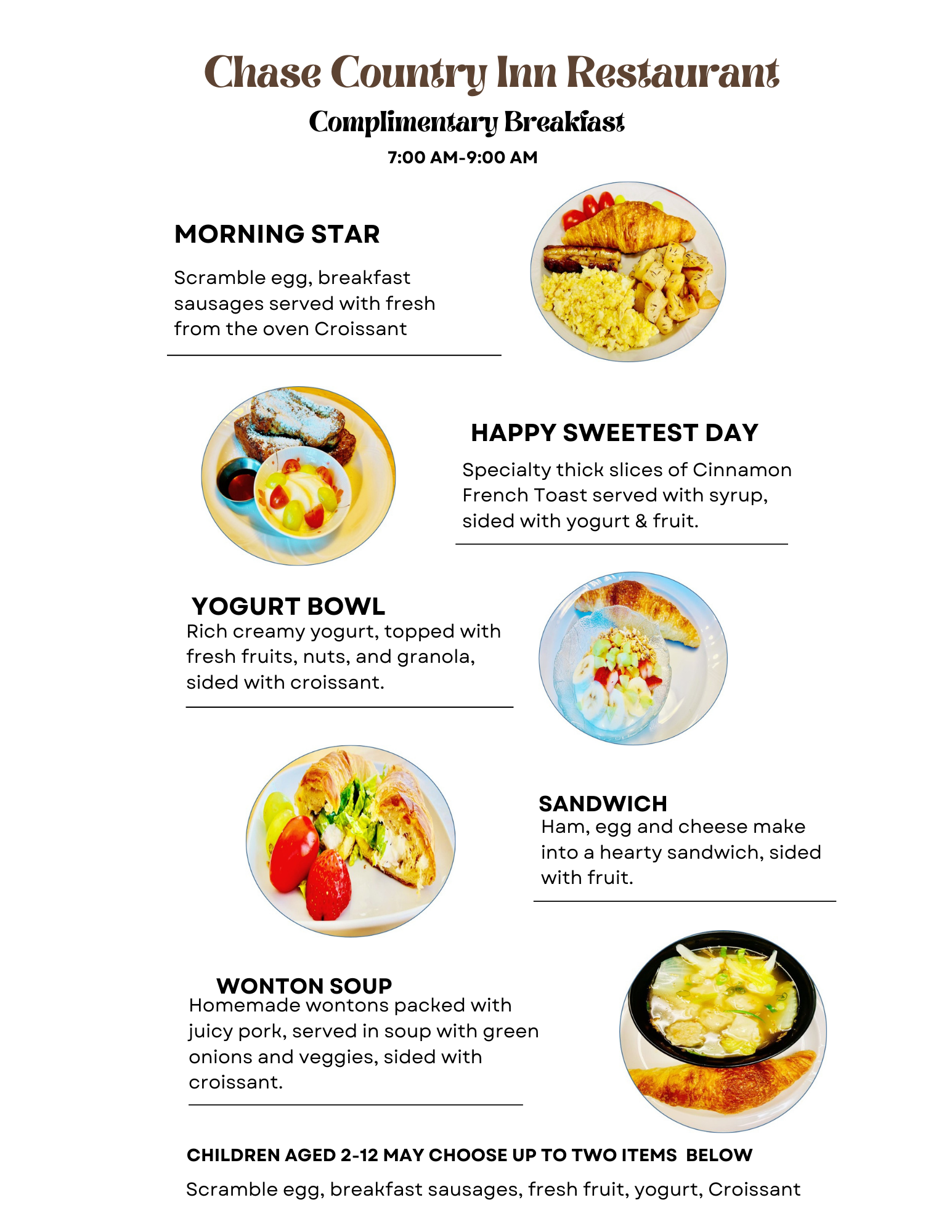 Our breakfast has received tremendous "likes" last summer. Our guests will enjoy complimentary breakfast for bookings from May 1st to October 17th. 2025.